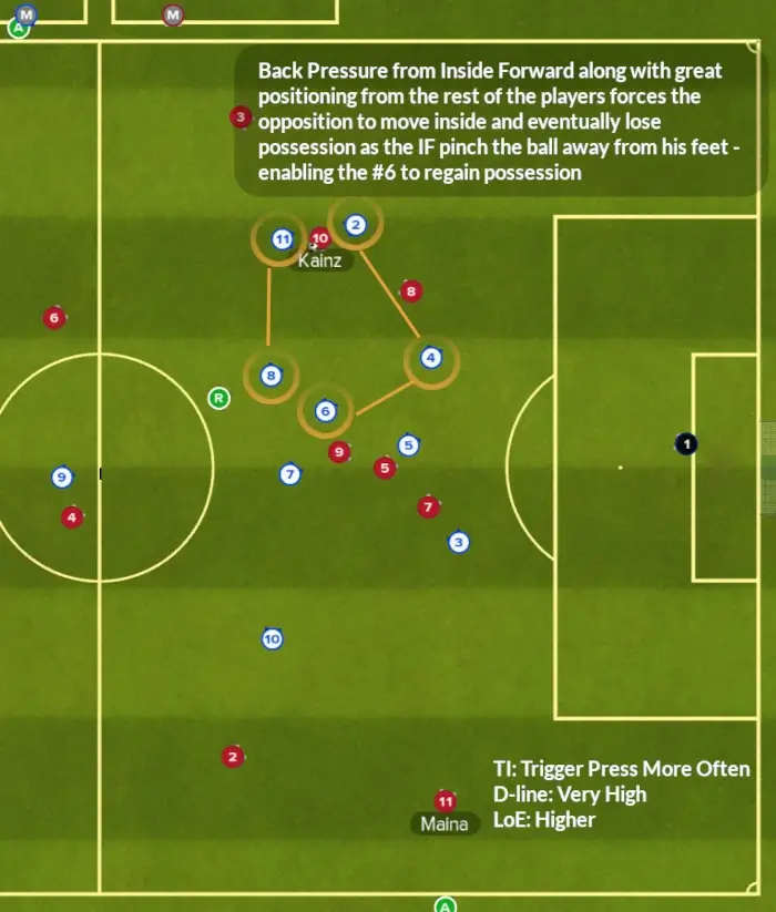• ปีก + ฟูลแบ็ค + กองกลาง วิ่งบีบพร้อมกัน
